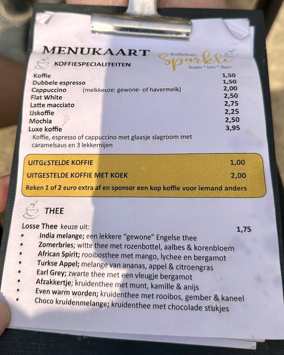Koffiehuis Sparkle Menu